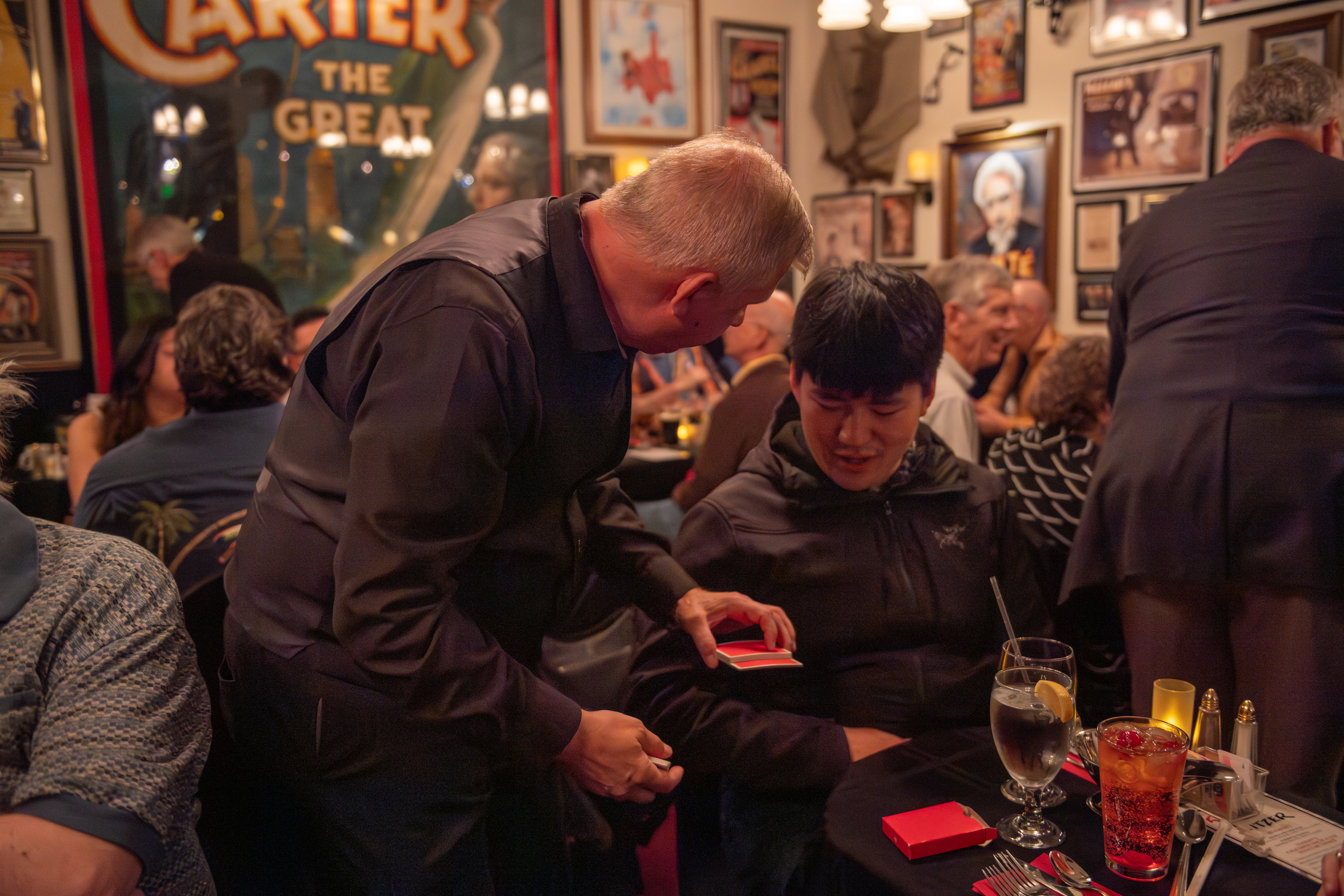 Live, up-close, and personal, California Magic’s Sunday Matinee brings our signature magic experience into a warm, early-afternoon setting. From the moment you walk in, you’re surrounded by vintage posters, velvet curtains, and the timeless ambiance that makes California Magic unlike anywhere else.